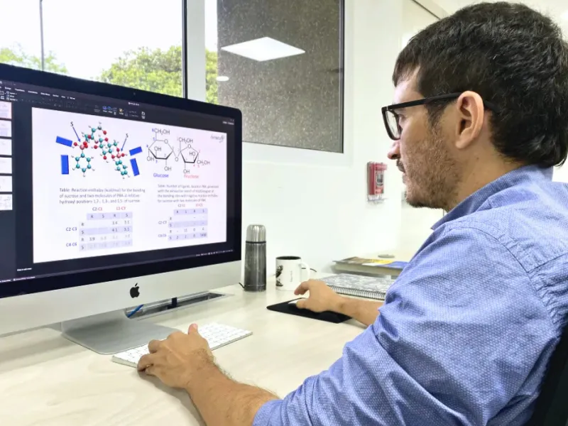 “Usar simulación computacional para este diseño de bajo peso molecular, que detecten sacarosa, nos permite desarrollar moléculas con alta posibilidad para ser sintetizadas en el laboratorio, reduciendo el tiempo y los costos asociados con el desarrollo de este tipo de moléculas. De esta forma, podemos lograr una tecnología para detectar y cuantificar sacarosa con alta especificidad sin necesidad de procesamiento de muestra”, afirma Lara.
