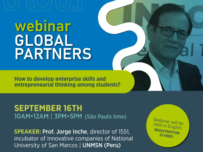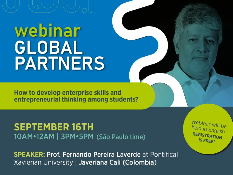 Este miércoles 16 de septiembre, en el marco del Global Partners, se realizará el webinar ¿Cómo desarrollar habilidades empresariales y pensamiento emprendedor entre los estudiantes? a partir de las 10:00 a.m. Serán cinco los invitados, representando a universidades de Perú, Sudáfrica, Brasil, Estados Unidos y Colombia. Por parte de nuestro país, el profesor Fernando Pereira Laverde del Departamento de Gestión de Organizaciones tendrá una intervención en el panel 'Casos de Colombia y Estados Unidos'.