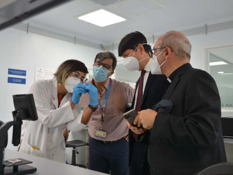 En la ceremonia estuvieron presentes las directivas de la Javeriana Cali y Bogotá, para realizar un acto de bendición del lugar por parte de los rectores de ambas sedes, Jorge Humberto Peláez, S.J. y Luis Felipe Gómez Restrepo, S.J., quienes también recorrieron el instituto para conocer sus laboratorios.