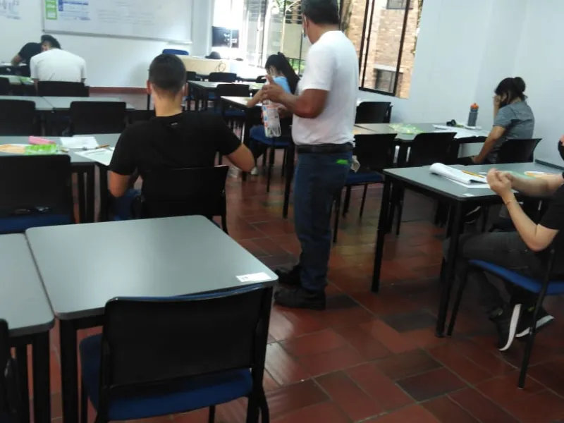 A la presentación del examen llegaron 600 estudiantes, quienes, uno a uno, debieron garantizar el cumplimiento de los protocolos de bioseguridad en la Universidad, que consistían en mantener la distancia físico, el uso adecuado del tapabocas y el lavado de manos.